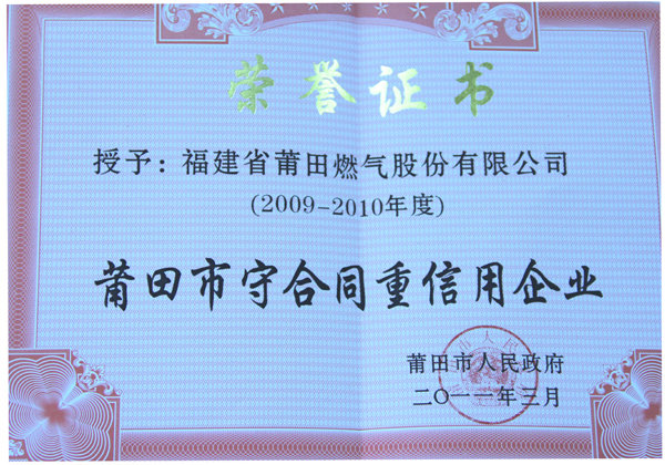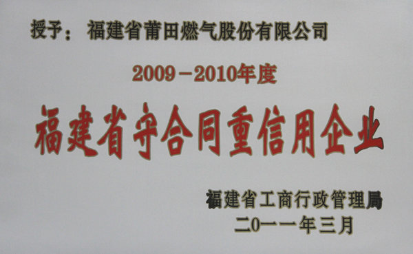 2009年10月      榮獲2009-2010年度“福建省守合同重信用企業”稱號和2009-2010年度“莆田市守合同重信用企業”稱號。