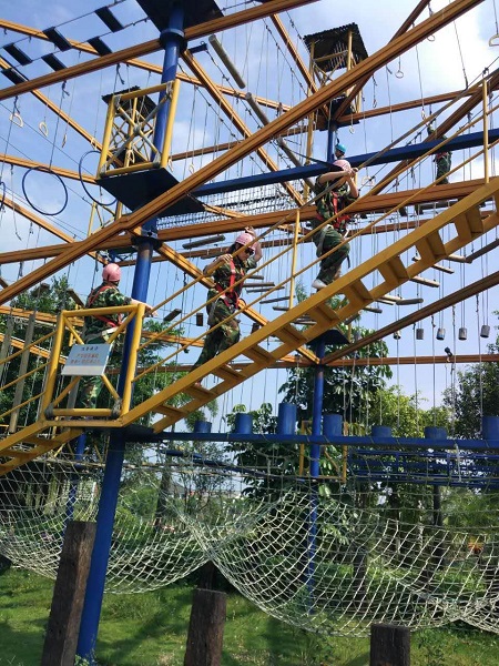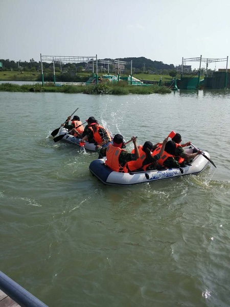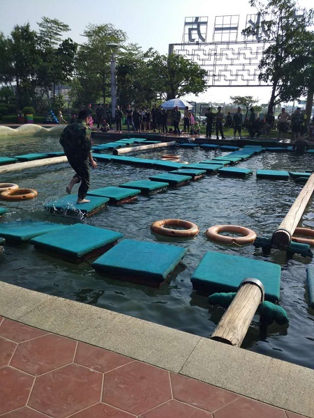 下午,在教官的組織下,隊員們體驗了心智高空挑戰以及水上皮艇水戰、鐵索橋、滾木、水上漂、水上吊橋、平衡橋、吊環飛渡等多種水上運動。隨著各項活動的比拼,隊員們增強了自信心,充分發揮了自己的想象力與創造力,在很大程度上克服了心理惰性,磨練了戰勝困難的毅力!