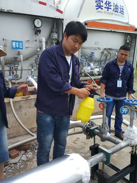 安全運營部熊經理將參與演練的所有人員分成三個小組,進行泄漏模擬演練。演練假設為當班人員在巡檢時,發現漏氣點,第一時間上報站長,并對泄漏點進行模擬搶修。當班人員關閉漏氣點上下游的球閥,并通過散管進行放散,排空設備和管線內的天然氣,再對泄漏處進行排查修復。處理泄漏點后,恢復正常生產,再對現漏點進行仔細的檢漏,確保無漏點。在這次模擬修復中,增強了同事之間的協同默契,也加強了全員使用搶修工具的熟練度。