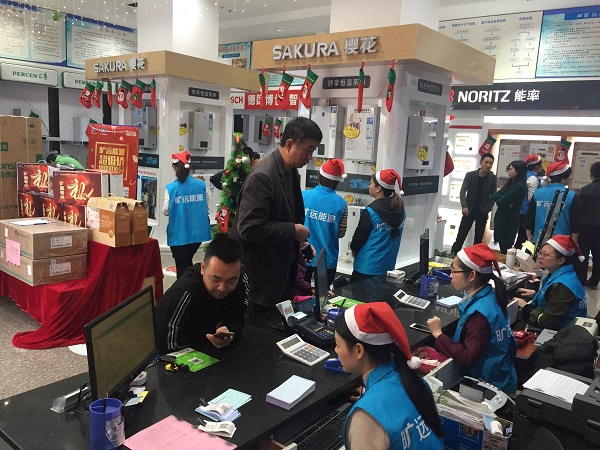 為持續性開展曠遠能源燃氣具銷售宣傳工作,以回饋廣大燃氣用戶,2017年12月23日,曠遠能源客服部在曠遠營業廳舉辦了“雙蛋大狂歡,年底無底線”團購會活動,現場共吸引百余名業主前來參加選購。