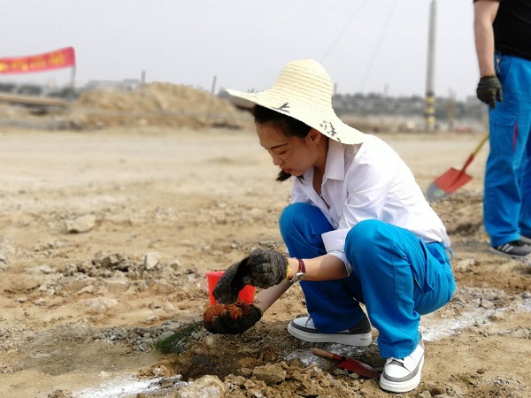 當天,烈陽當空,“曠遠藍精靈”們以“植出一片綠,再添一片景”為目標,擼起袖子,揮動鐵鍬,挖坑、扶樹、培土、澆水等,干得熱火朝天,一棵棵樹苗被栽進土壤,汗水伴著喜悅閃爍在眾人臉上。據統(tǒng)計,當天植樹達5000棵,一排排樹苗沿著石門澳產業(yè)園滯洪區(qū)南側連綿近2公里長,為建設現(xiàn)代化的石門澳產業(yè)園區(qū)再添一道綠色的屏障。
