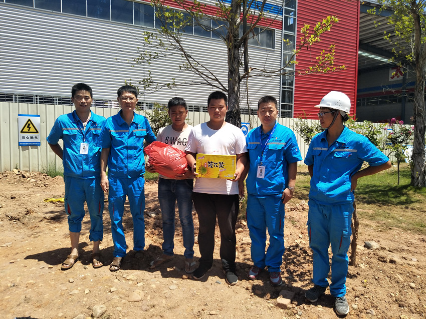 7月18日,上杭曠遠能源有限公司總經理姚力爭、副總經理郭明亮、工程部副經理李寧森一行對宏盛市政上杭項目部施工班組人員進行實地高溫慰問工作,上杭曠遠能源有限公司堅持以人為本,抓好生產運行的同時,高度重視員工勞動保護工作。在盛夏高溫季節,公司領導深入基層班組和施工現場,送防暑降溫水果及飲料,慰問冒高溫作業的施工班組人員,他們奮戰在工程建設的第一線,搶抓施工黃金季,確保各項工程的安全、優質..